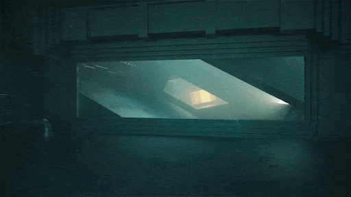 2. The player finds their way through a light beam to go further inside the maze.